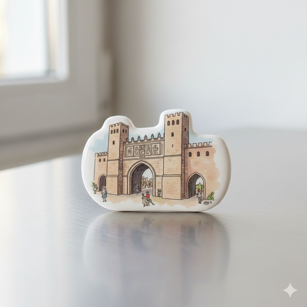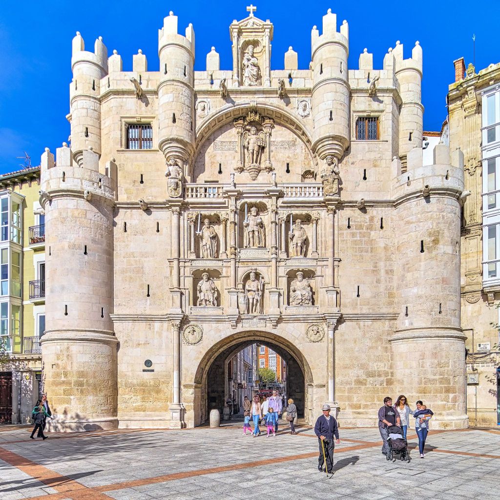Imán decorativo con ilustración del Arco de Santa María, uno de los monumentos más emblemáticos de Burgos. Un recuerdo lleno de historia.